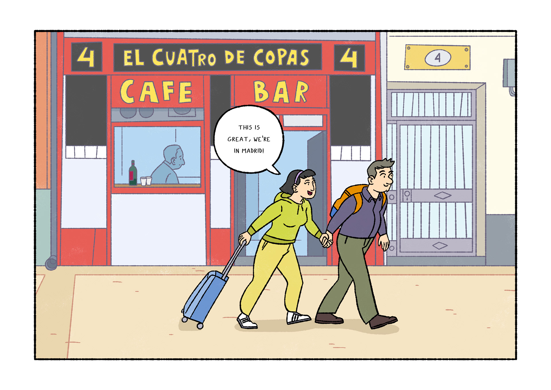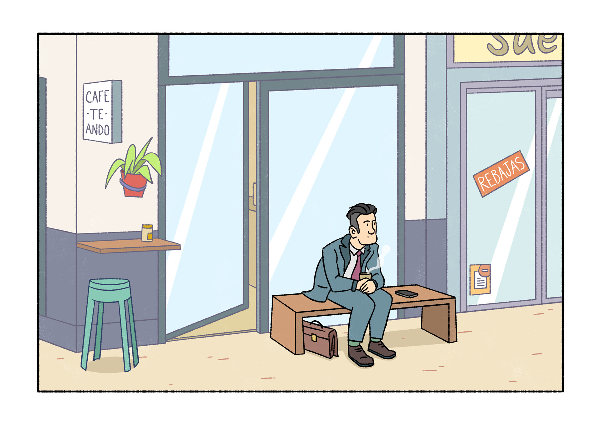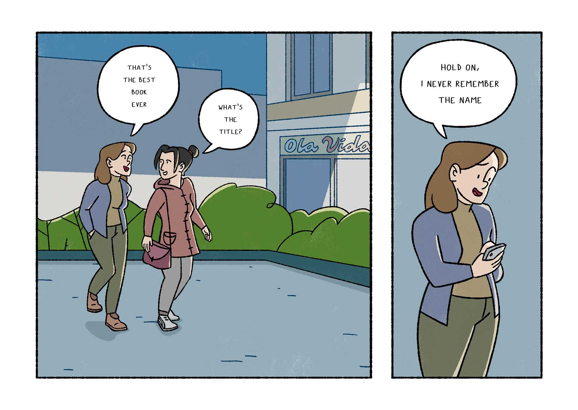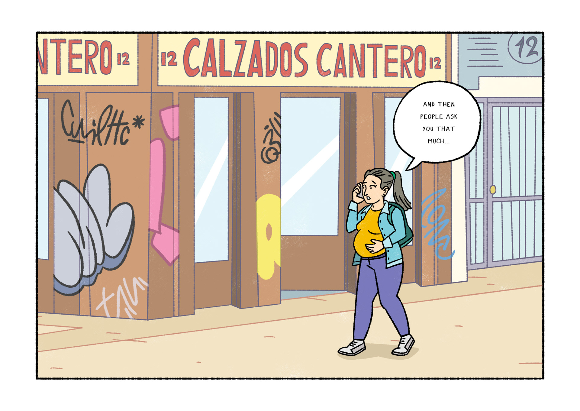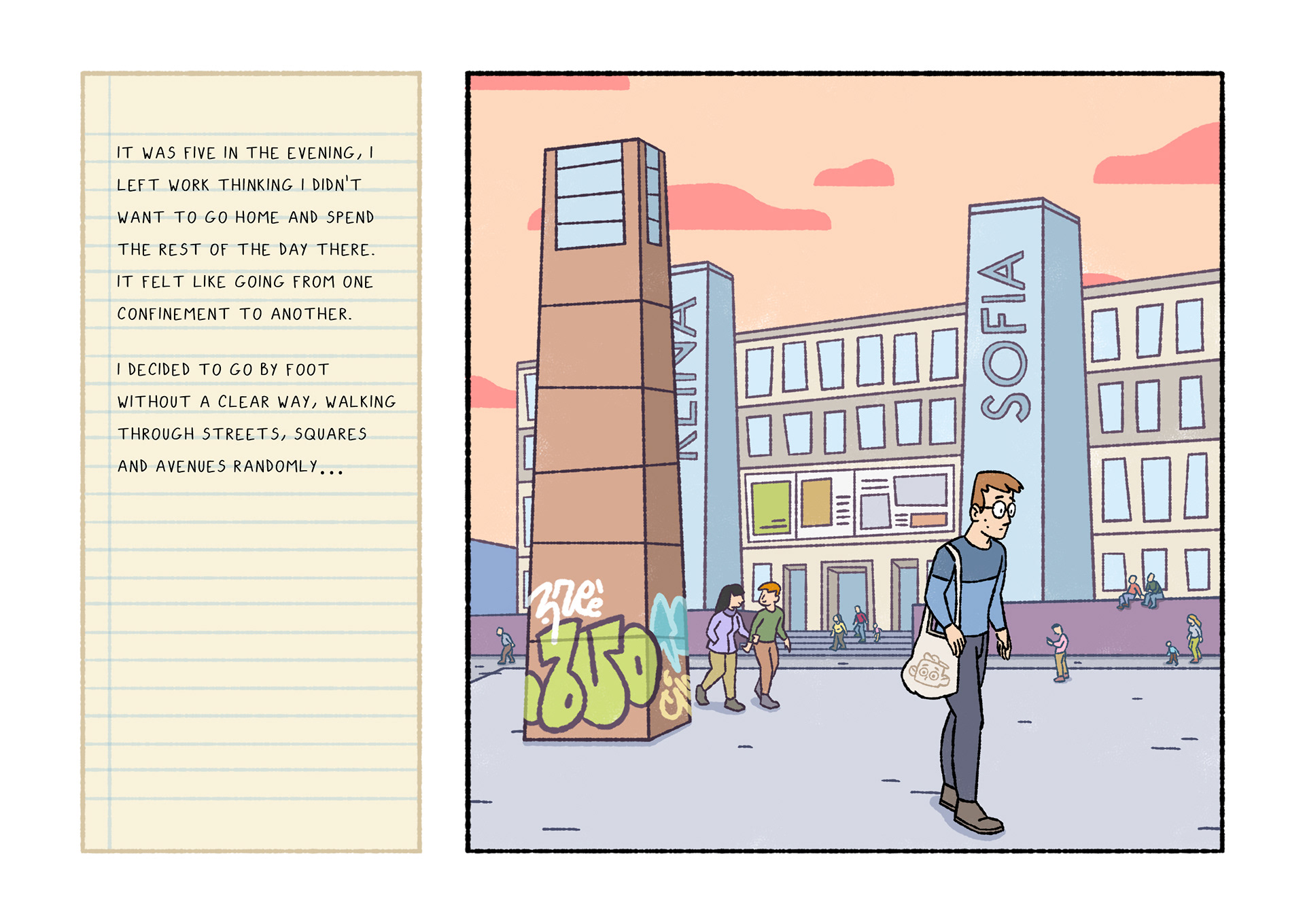 Olavide is a comic which portraits daily life. Each page shows a real conversation or sentence I listened on the street. After selecting 120 and chose Plaza de Olavide as the perfect scene, I started to draw them.