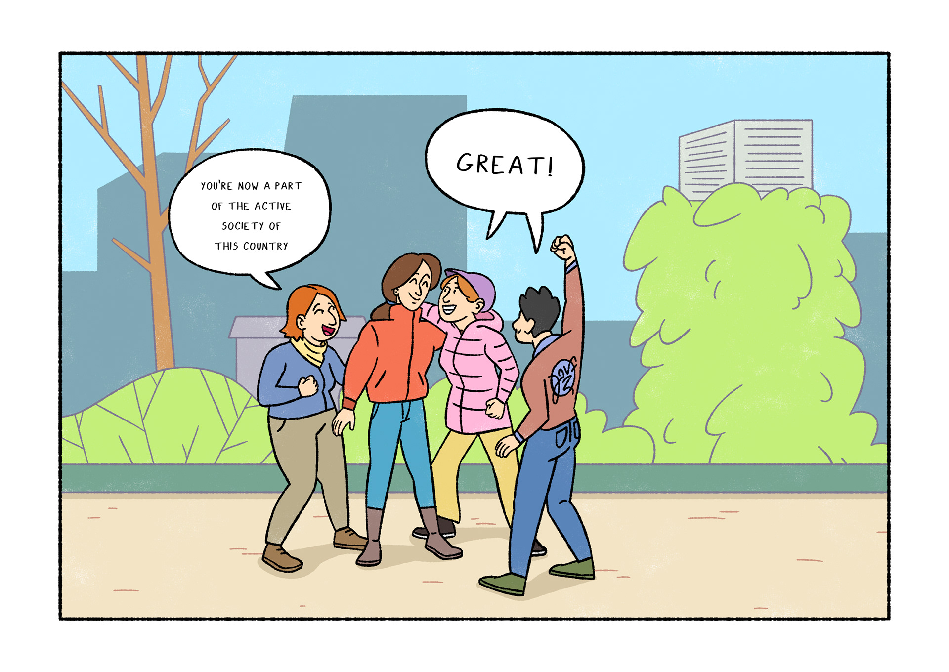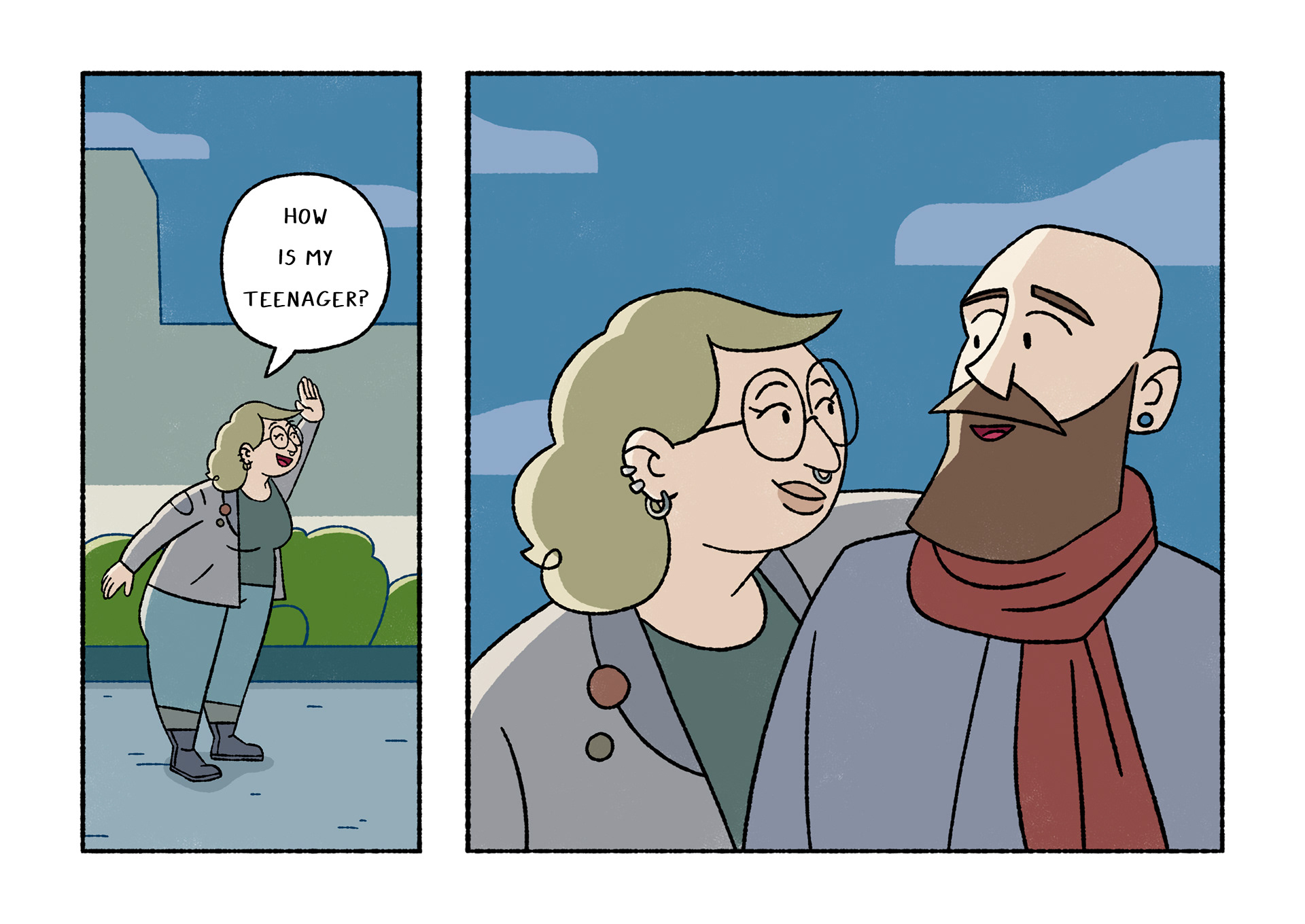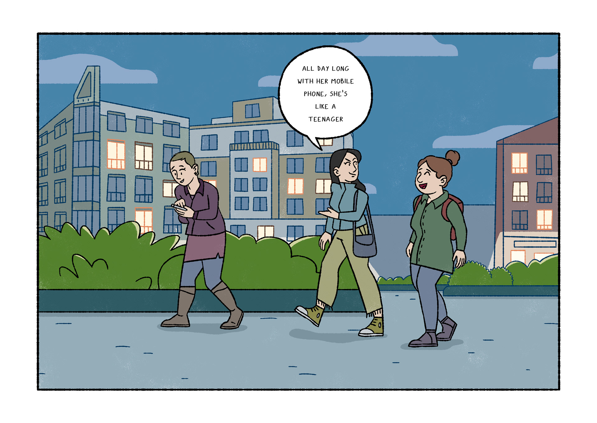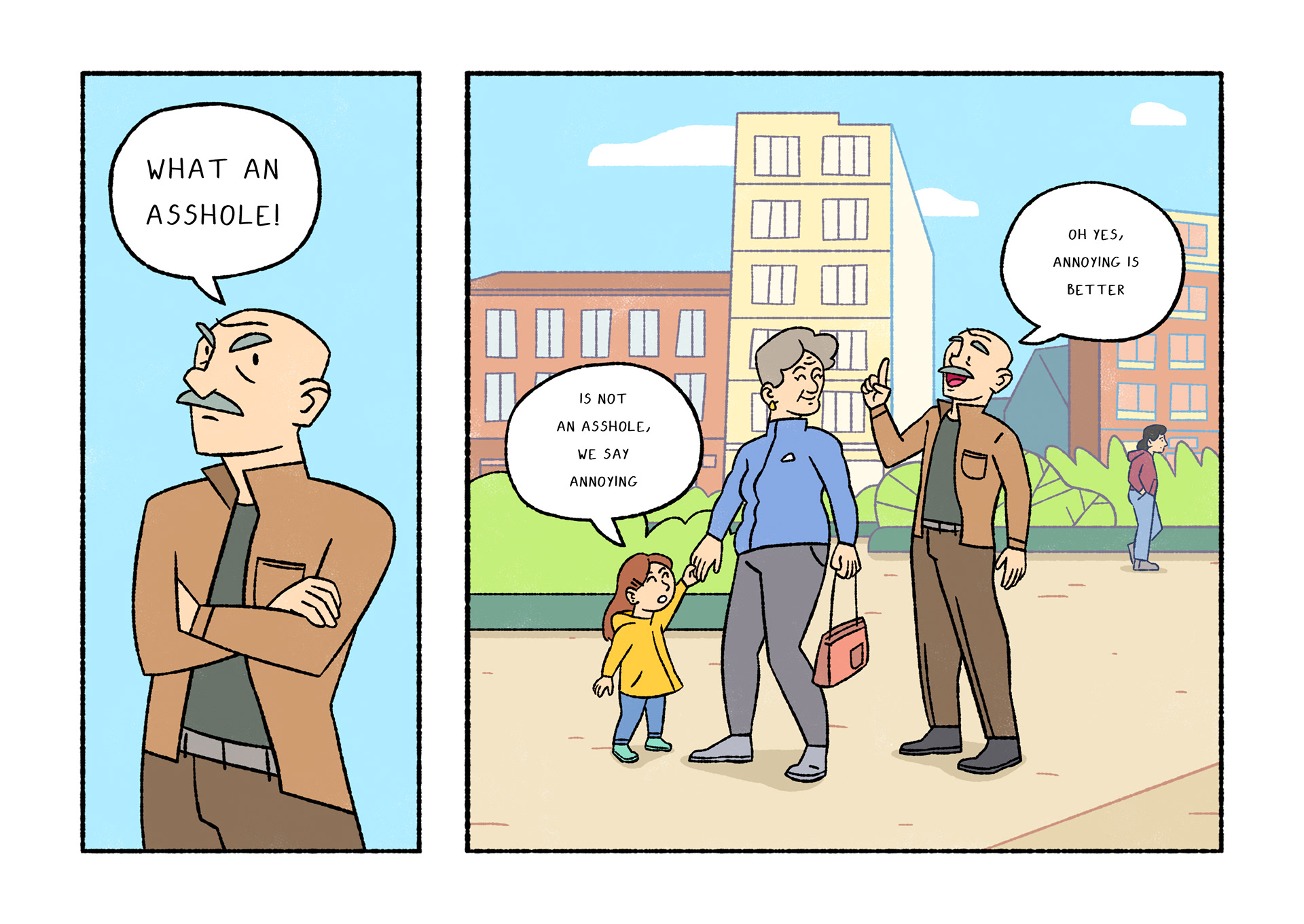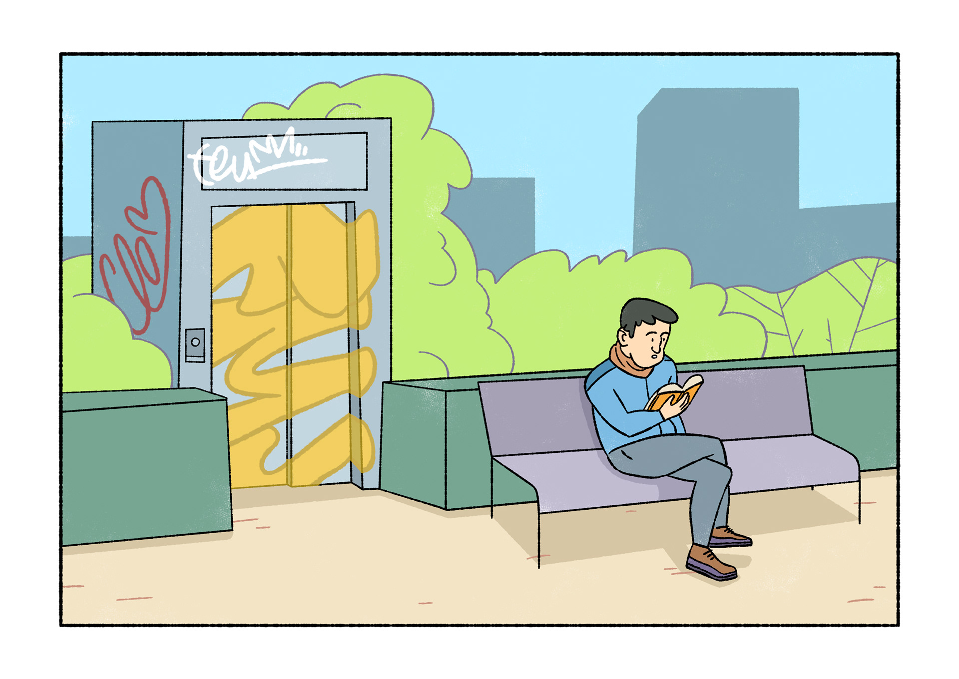 Olavide is a comic which portraits daily life. Each page shows a real conversation or sentence I listened on the street. After selecting 120 and chose Plaza de Olavide as the perfect scene, I started to draw them.